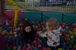 Since the Spring fair we have been telling Johnny that he needs to eat his dinner so that he can grow tall enough to go on more rides. His dream came true this time and he got to go in the ball pit. He didn't want to go down the slide that gets you to the ball pit, it took some convincing. After all his hard work to get there, I don't think he enjoyed the balls. At all. So on to the next ride we went!